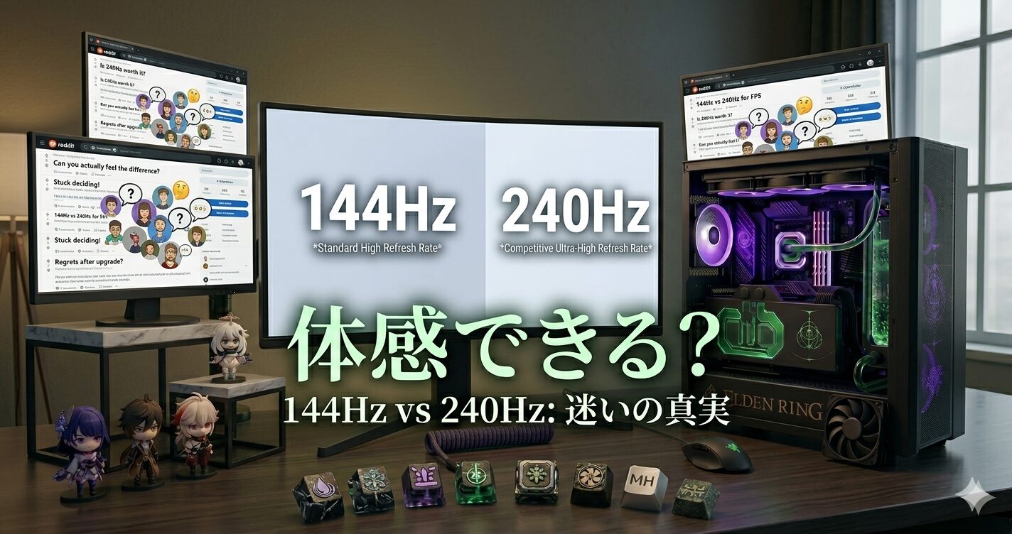 まずゲーミングPCを買う段階 → 144Hz + 良いGPUへの投資を優先(GPUが弱ければ240Hzは無意味。RTX 5060 Ti + 144Hzモニターの方が費用対効果が高い)
