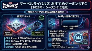 ゲームソフトから選ぶ マーベルライバルズ おすすめゲーミングPC【2026年・シーズン7.5対応】推奨スペックと144fps達成の選び方