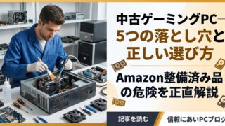 中古ゲーミングPC・整備済み品おすすめ2026【5つの落とし穴と正しい選び方】——Amazon整備済み品の危険・ビジネスPC詐欺・RTX 3060買い時・TCO比較まで完全解説