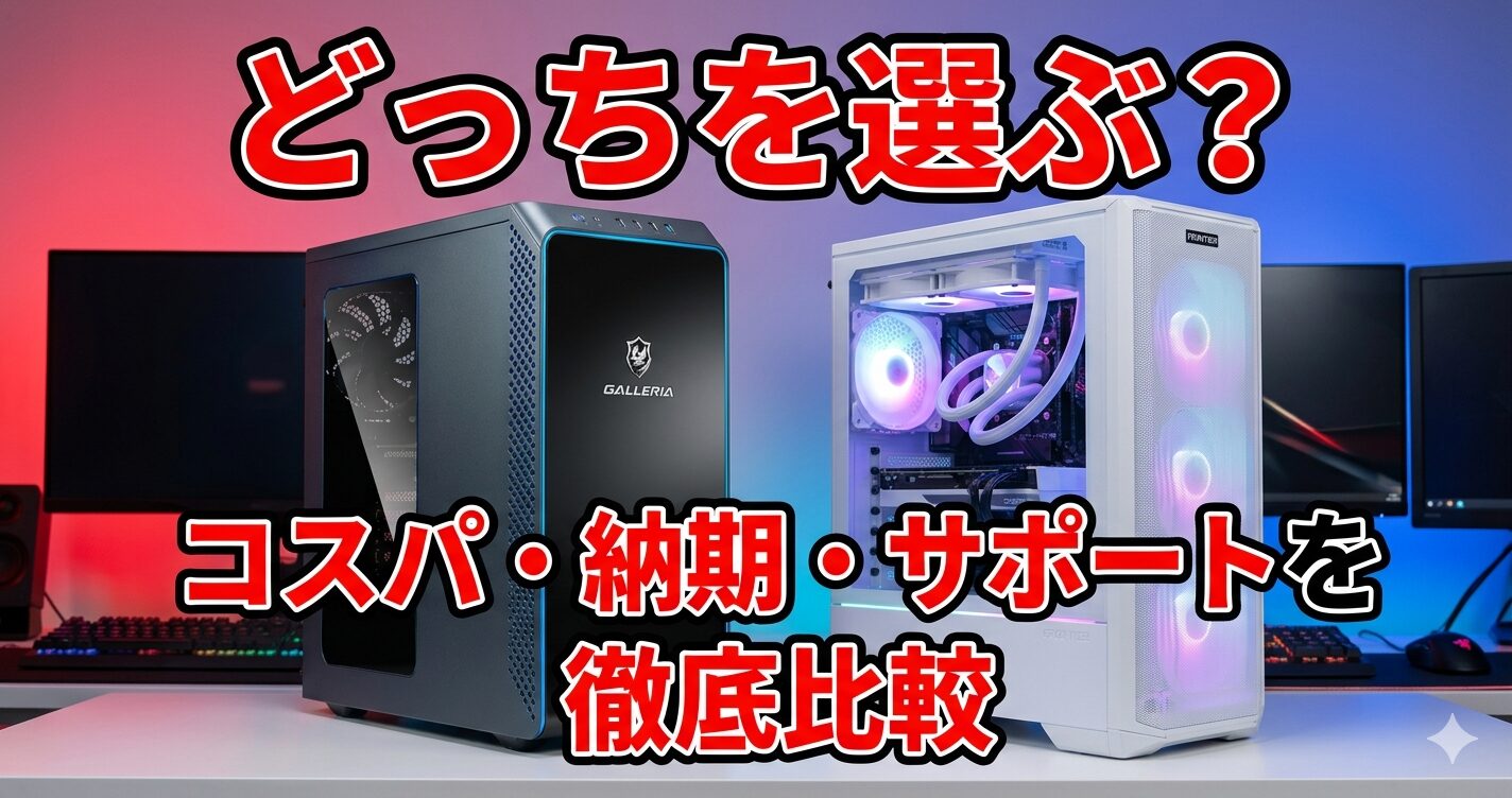 この記事では、①「フロンティアが安い」はセール時限定という価格構造の正直な解説②フロンティアのサポートが24時間非対応という購入前に知るべき事実③ドスパラの「即納力」が唯一の選択肢になる具体的な場面④フロンティアセールを失敗なく攻略する手順⑤「どちらが安いかは同日比較が正解」という実践的な結論——5つの独自視点を解説します。さらに2026年4月時点で両社から選ぶべきおすすめゲーミングPCも各2選ずつご紹介します。