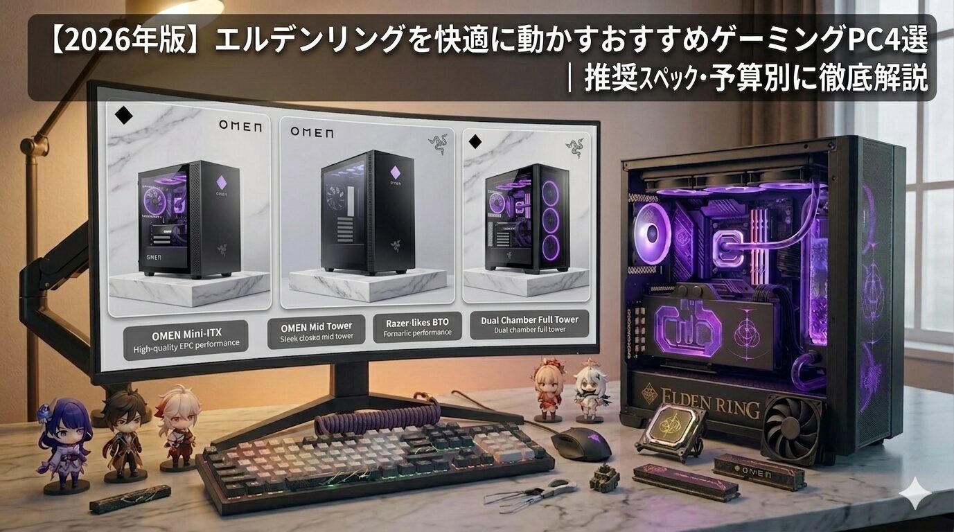 本記事では、フルHDから4Kまで予算と用途に合わせたおすすめゲーミングPC4選を具体的なモデルとスペック根拠を示して紹介します。また「重い・カクつく」問題の原因と対策、DLC「黄金樹、消えゆく者たちへ」への対応スペックまで詳しく解説します。