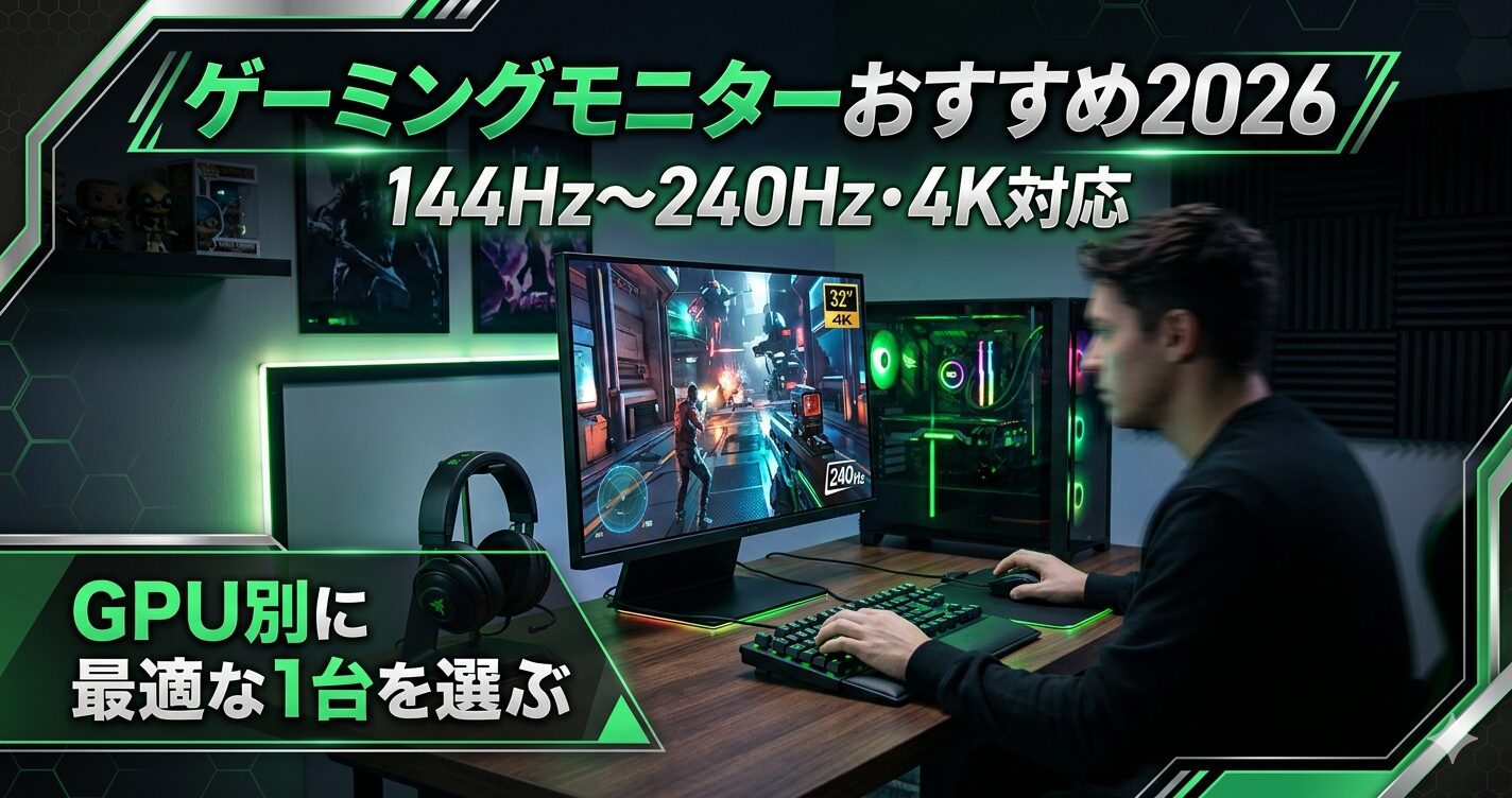 この記事では「自分のゲーミングPCのGPUに合ったモニターを選ぶ」という、競合記事がほぼ触れていない視点を軸に解説します。RTX 5060搭載のPCに4K/144Hzモニターを繋いでも、GPUが4Kの映像を出力できなければ宝の持ち腐れです。正しい組み合わせ方と、2026年3月時点のコスパ最優秀モデルを用途別・予算別で紹介します。