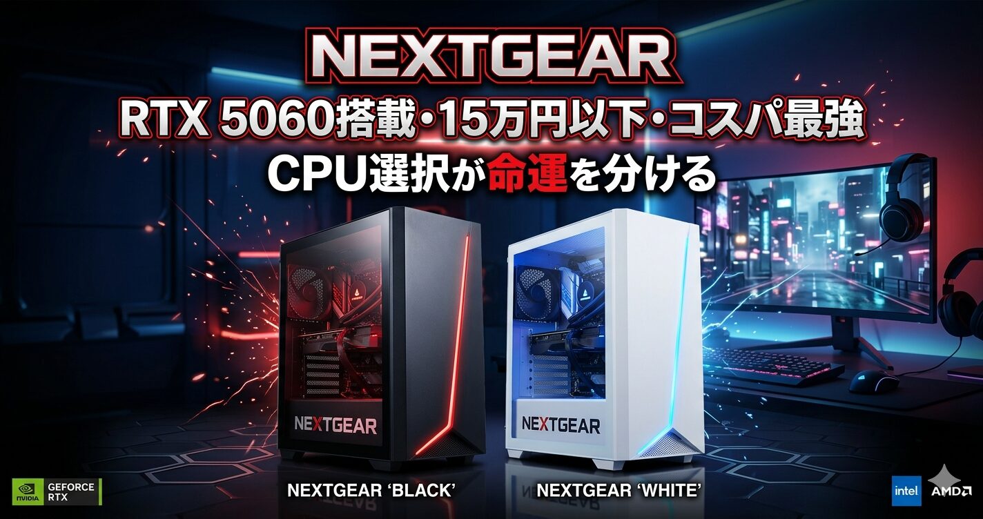 15万円以下のRTX 5060搭載PCには、主に2つの価格帯のモデルが存在します。「最安値を選ぶか・1万円足すか」という選択は、ゲームプレイの満足度に直接影響します。この視点を具体的に書いた記事は競合にほぼありません。