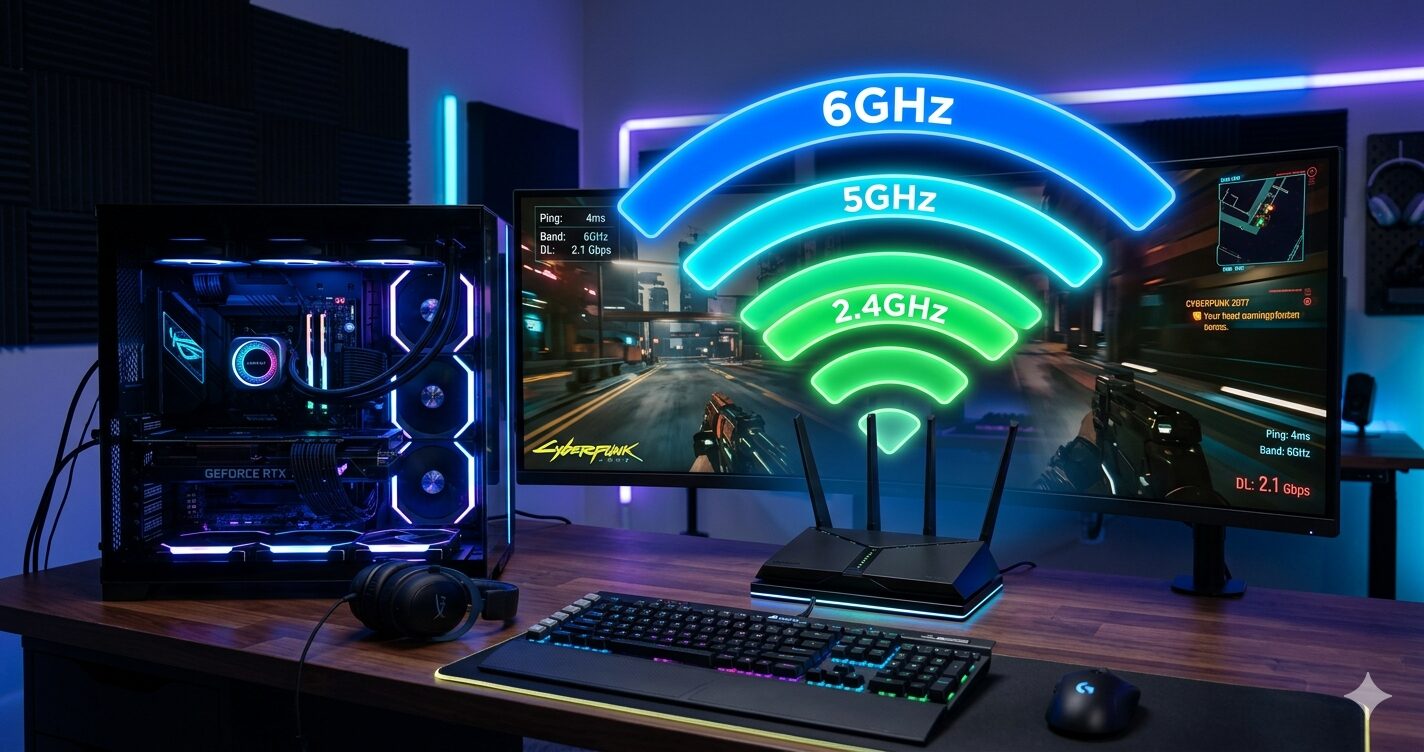 安定性では有線2.5GbEが上です。Ping値の平均は近くなりましたが、スパイク遅延のリスクがWi-Fi 7には残ります。一般的なゲームプレイでは体感差がほぼない状況になっていますが、プロレベルや重要な大会では有線を推奨します。速度面では逆にWi-Fi 7(6GHz帯・320MHz幅)の方が上を行くケースがあります。「遅延の安定性=有線」「最大速度=Wi-Fi 7」という使い分けが2026年の正確な評価です。