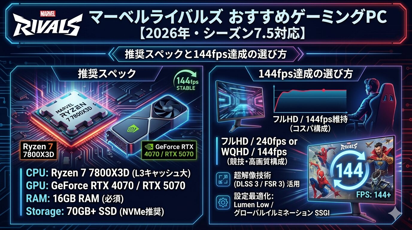 マーベルライバルズ おすすめゲーミングPC【2026年・シーズン7.5対応】推奨スペックと144fps達成の選び方