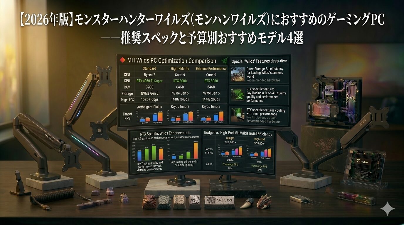 「モンハンワイルズをPCで快適に遊ぶためには、どのくらいのスペックが必要?」「今から買うならどのゲーミングPCがおすすめ?」——この記事はその疑問に全部答えます。