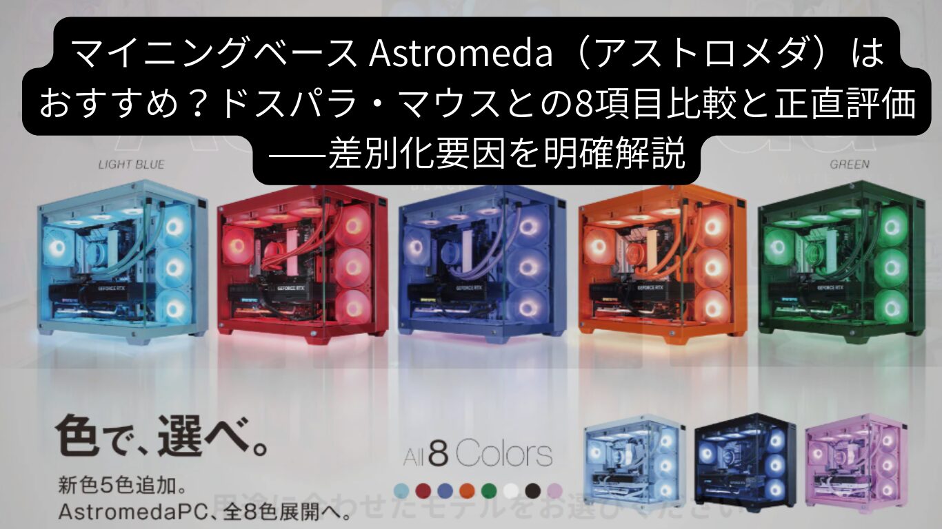 「マイニングベースのAstromeda(アストロメダ)が気になる。でもドスパラやマウスコンピューターと比べてどう違うの?」——この記事はその疑問に正面から答えます。