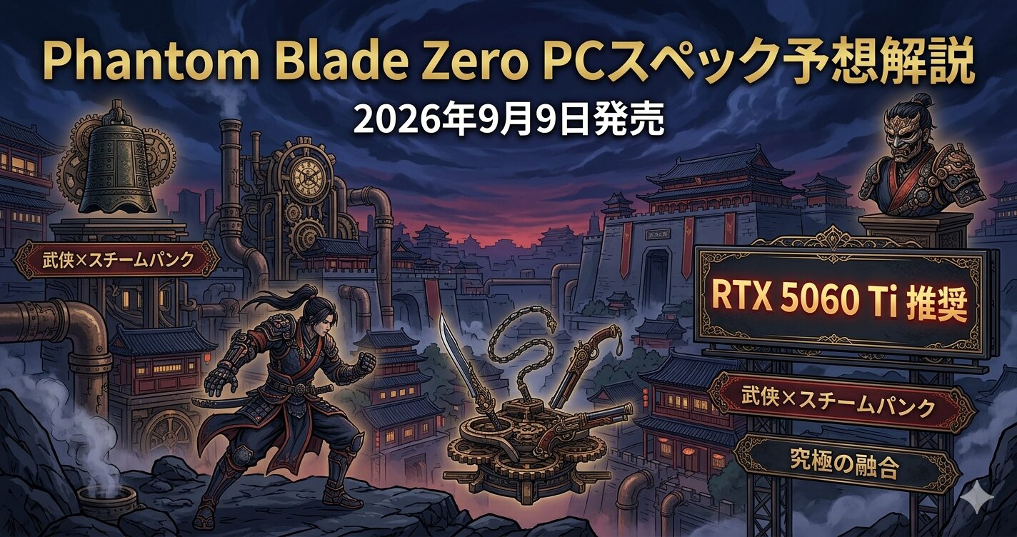「Phantom Blade ZeroをPCで遊ぶにはどのくらいのスペックが必要か?」——この記事では2026年9月9日発売予定のPhantom Blade ZeroのPC版スペック予想と、今から準備すべきゲーミングPCの構成を解説します。