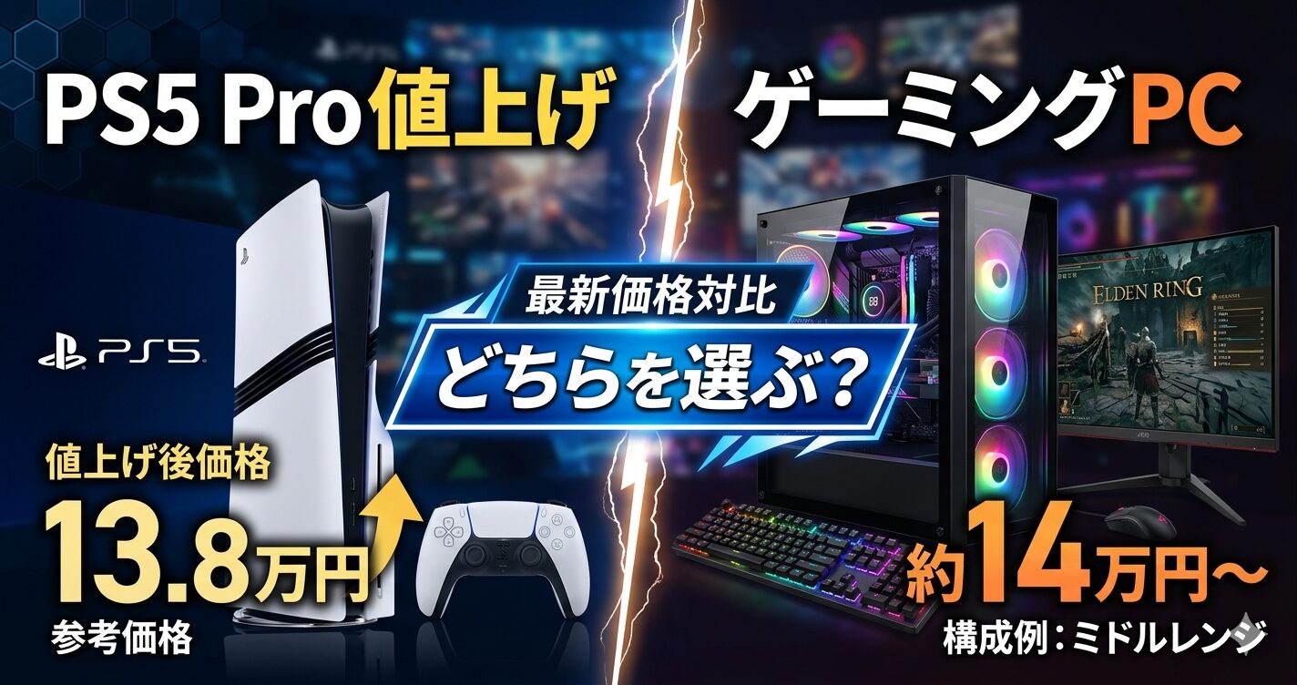 ※本記事の価格情報は2026年4月2日のSIE公式発表に基づきます。ゲーミングPC価格は2026年3月〜4月時点の参考値です。最新情報は各公式サイトでご確認ください。