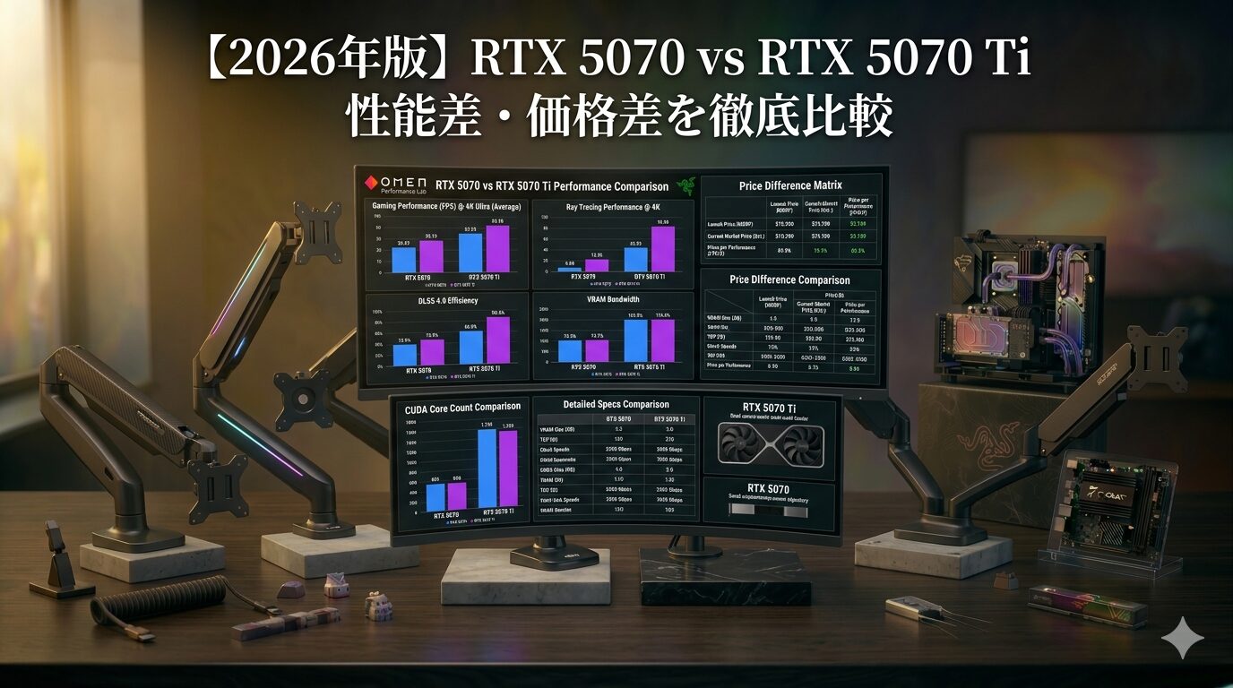 ただし「6〜10万円の価格差はただの性能アップではない」という点は多くの記事が見落としています。VRAM +4GB・帯域幅 +33%・DLSS MFGとの相性——この複合価値が「Tiを選ぶ本当の理由」です。本記事ではベンチマーク実測数値・4Kゲーミングのリアル・クリエイター用途まで含めて徹底比較します。