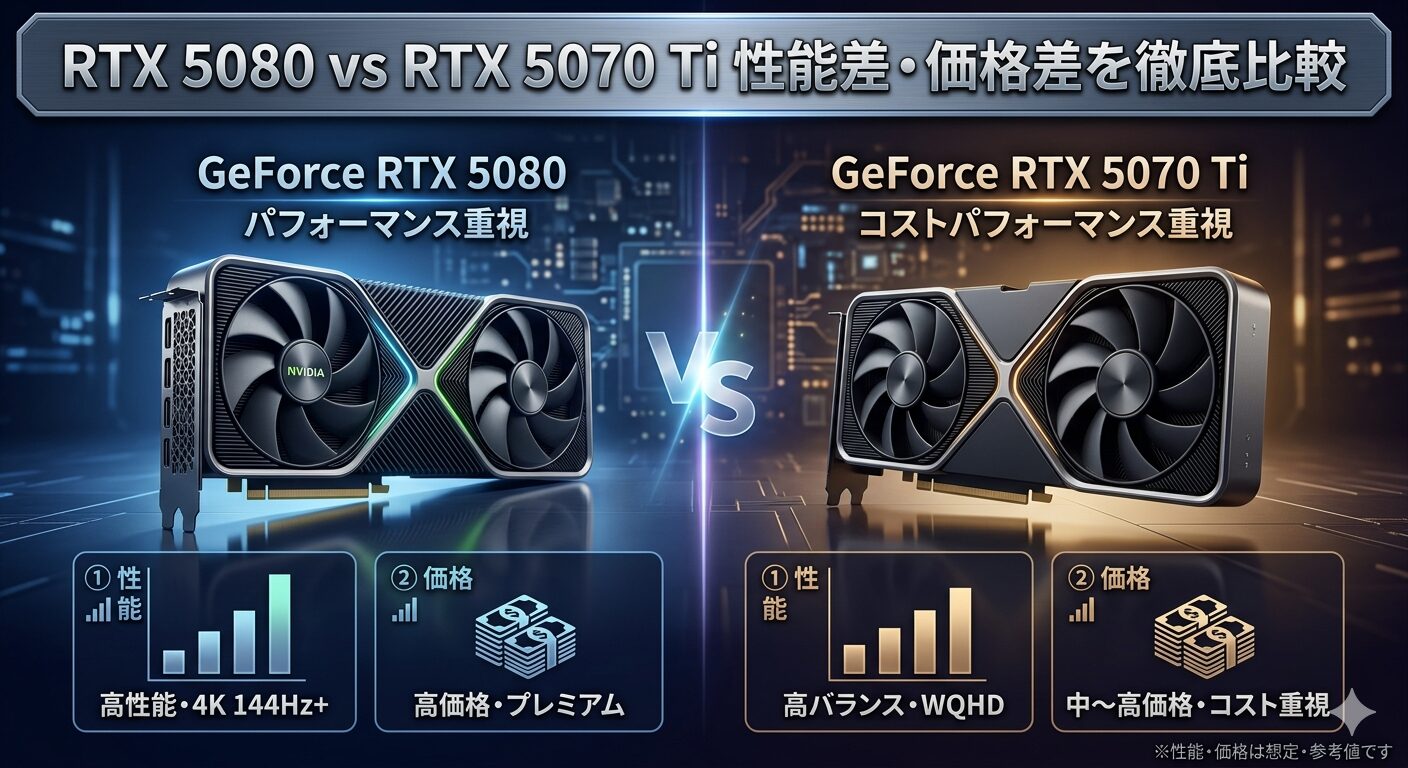 | ✅ RTX 5080 vs RTX 5070 Ti スペック完全比較——VRAMが同じなのに価格差が大きい理由 |