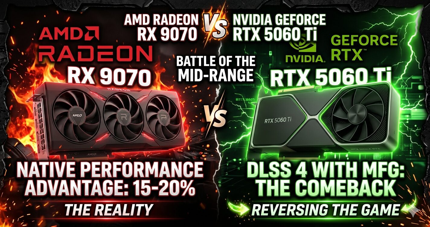 「RX 9070とRTX 5060 Ti、どちらを選べばいいですか?」——この問いに対して、多くの比較記事は「ラスタライズ性能ではRX 9070が上・DLSS 4はRTX 5060 Tiの強み」という2行で答えを出します。しかしこの比較には、読者が陥りやすい重大な見落としが含まれています。
