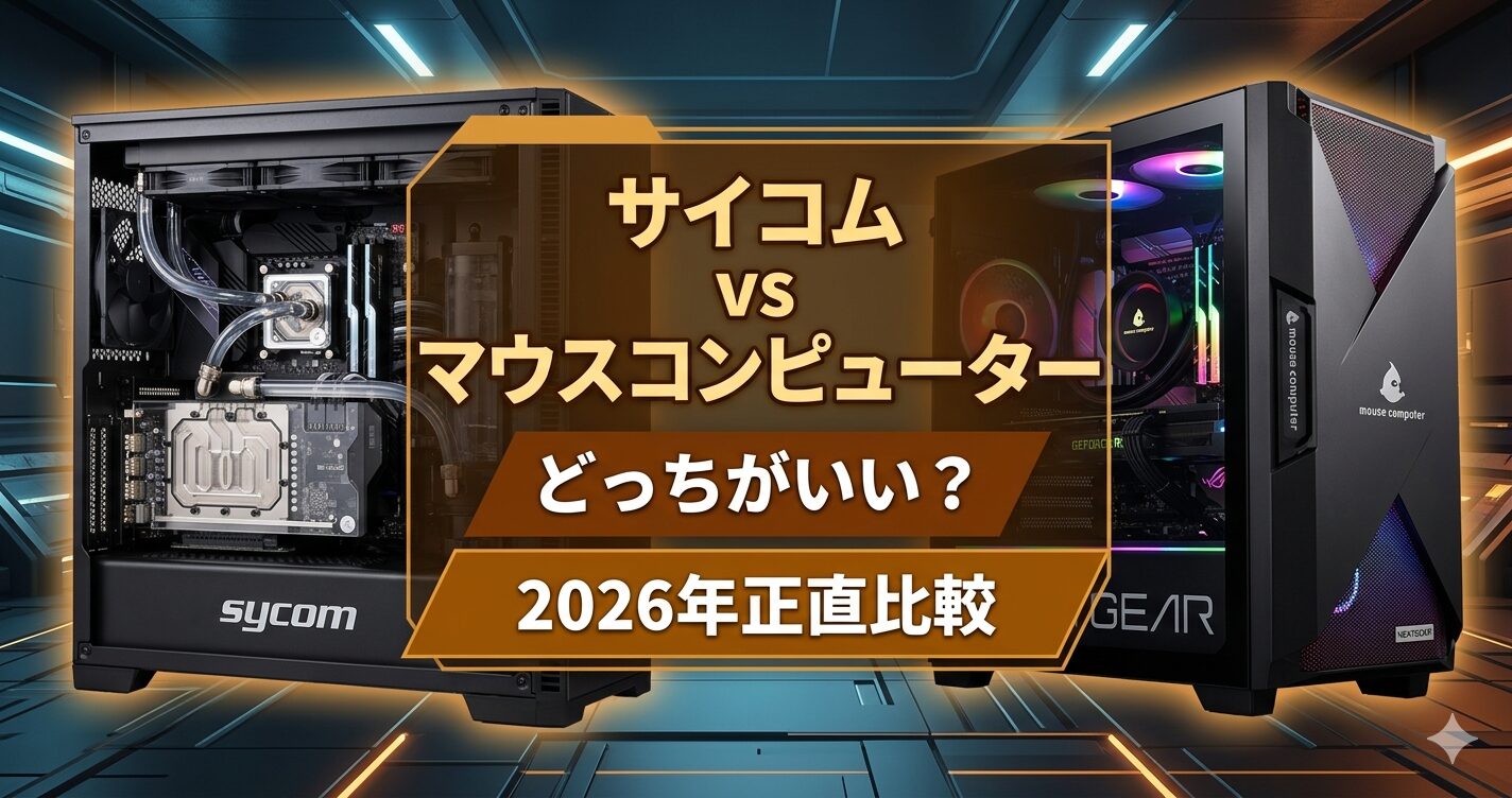 「サイコムにしようかマウスコンピューターにしようか、どっちがいいんだろう?」——BTOゲーミングPC購入を検討したとき、この2メーカーが最終候補に残る方は多いです。どちらも国内のBTOメーカーですが、その方向性はまったく正反対です。