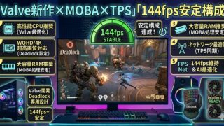 ゲームソフトから選ぶ Deadlock向けおすすめゲーミングPC 2026——Valve新作MOBA TPS・144fps構成・推奨スペック Deadlock(デッドロック)向けゲーミングPCを正直比較。①チームファイト中20〜30%fps低下の原因②Source 2のCPU依存③DLSS対応でNVIDIA有利④VRAM実使用量④MOBA勢・FPS勢の構成差——おすすめ3選を解説。 2026.04.24 ゲームソフトから選ぶ